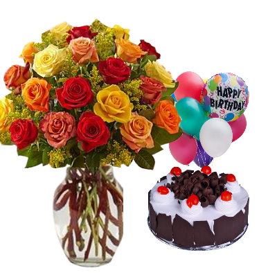 24 Mixed roses with Cake & Balloon24 Mixed roses with Cake & Balloon |