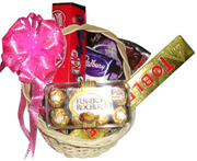 Chocolate Basket-416 pc ferrero, tobelerone (100 grm), Cadbury (150 grm) and kitkat choclate in basket.. |