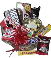 Fulla Chocolicious Treats !Includes: Chocopie 168g, Ferrero Rocher in Heart-shaped Gift Box, Chunky Bites 45g, Hershey's Kisses 40g, Snickers 58.7g, Loacker Napolitaner 45g, Nestle Milk Choco 5oz, Meiji Macadamia 87g, Heshey's Milk Chocolate.(Total 10 items) |