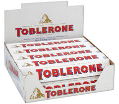 12 x Toblerone White 100 g.Delicious Swiss Toblerone, white chocolate with honey and almond nougat. Contains: 12 x Toblerone White 50 g. |