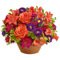 RushmoreA monumental creation of extreme extravagance forms this gorgeous arrangement for your loved one comprising of burnt orange roses with a medley of bright blooms in shades of deep purple, red and chartreuse.A monumental creation of extreme extravagance forms this gorgeous arrangement for your loved one comprising of burnt orange roses with a medley of bright blooms in shades of deep purple, red and chartreuse. |