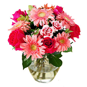 See u soonThis bouquet celebrates Special Moments that transform and Give hope. New life, new Directions, new Beginnings, a Rebirth! Send One dozen Mixed bouquet of Fuschia Roses, Two-tone Pink carnations and Pink gerberras with greenery. (Vase is Not included) Earliest delivery date: 2013-5-24, Friday |