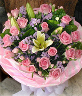 Only love sweetheart21 Pink Roses, 2 Lilies, jasmine. |