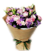 Source12 pink carnations, with pink Prairie gentian and forget-me-not. |