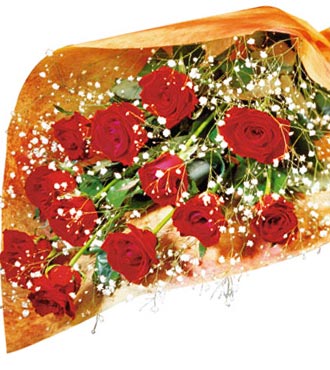 A lovely bouquet of roses is wrapped and ready for the recipient's .