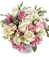 18 pieces Pink and white roses fern in a nicearrangement. This charming arrangement expresses your tender feelings very eloquently.
