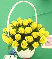 2 Dozens Roses BasketRoses are like the ponies of the rose world; smaller but just as beautiful if not more lovable. Considered "cute" roses, this large arrangement comes with 24 yellow roses. Placed into a large basket and blended with assorted greenery, this combination makes for the perfect gift on anniversaries or as a friendship gift. |