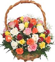 24 pieces of mix roses in a gorgeous native basket. Beautiful and delicate pastel colors flowers arranged in large fireside basket. Perfect for decoration of any ceremony or party.