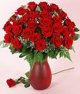 Wish your close ones with some pretty looking Roses on any occasion. 36 Red roses in a glass vase.