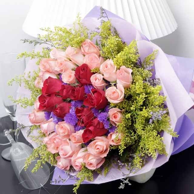 36 Pink/red Roses with Yellow Phoenix