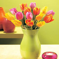 A good arrangement with 10 pieces of gorgeous pink and yellow tulips in a glass vase to show your love one that you always remember her. Note: Color may vary.