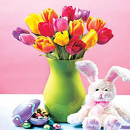 Never You FarRed, yellow, blue 15 tulips are arrange in bouquet. Note: Color may vary. |