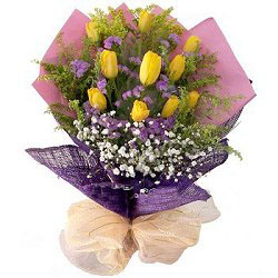 Yell0w Tulip Bouquet"Presentation" - beautiful 10 pieces of yellow tulips are they key to anyones heart. Note: Color may vary. |